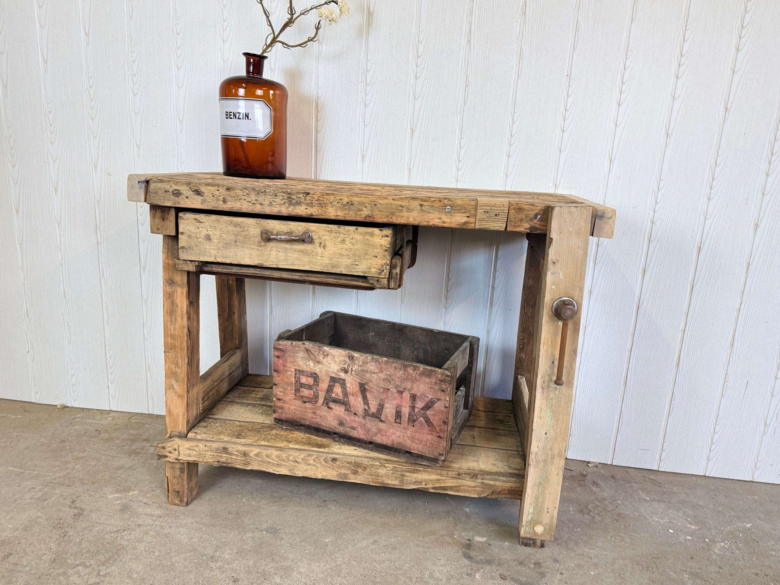 Die Werkbank ist ein echter Hingucker und bringt rustikalen Charme in jeden Raum. Sie ist stabil und voll funktionsfähig.