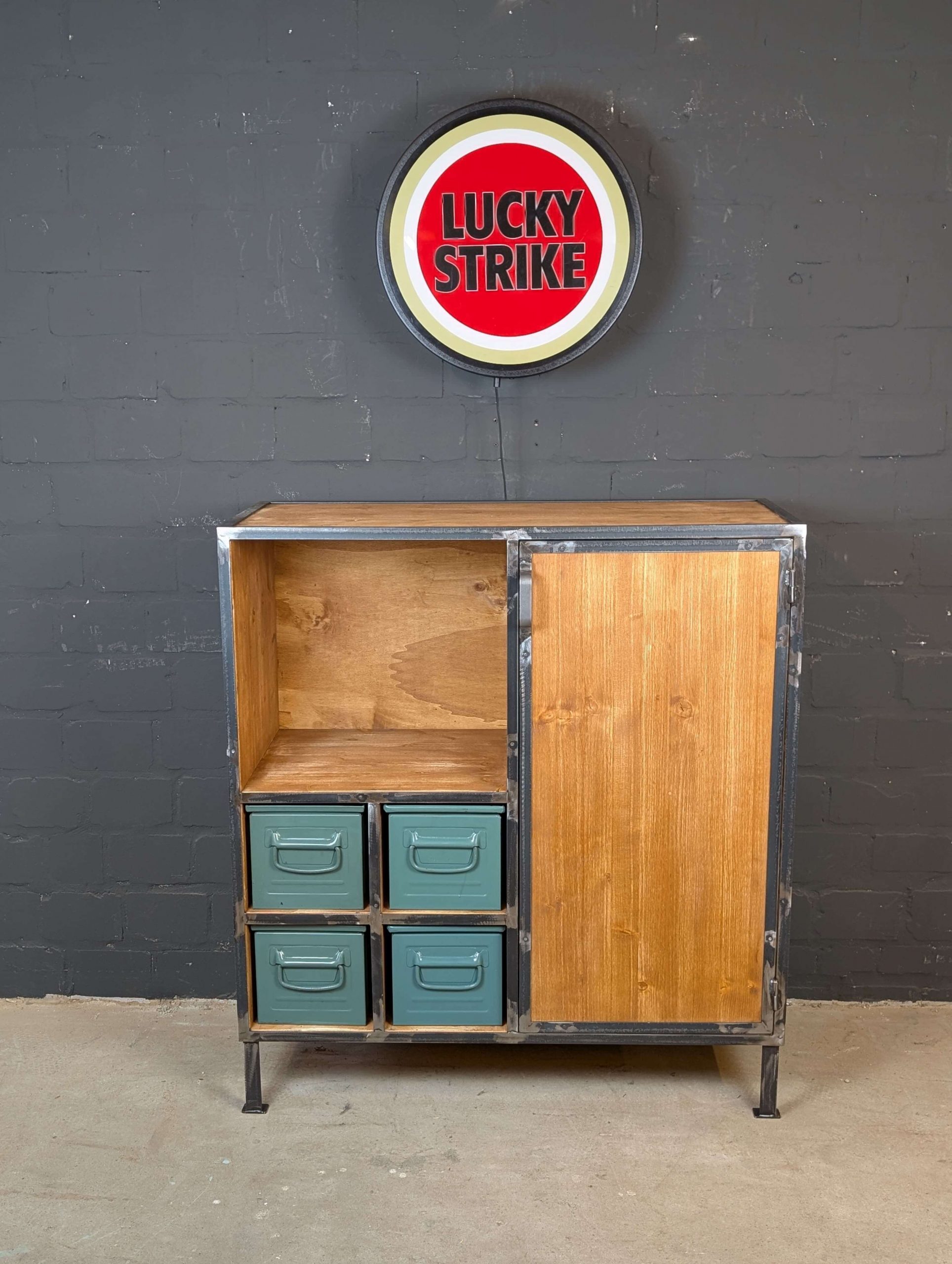Handgefertigtes Industrial Sideboard aus Massivholz Fichte.