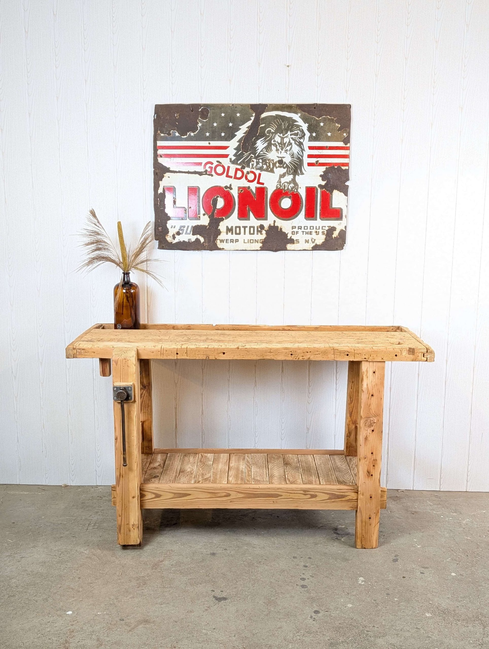 Kleine französische Werkbank aus massivem Pinienholz – liebevoll und wohnfertig restauriert. Das charmante Einzelstück überzeugt mit seiner warmen Holzoberfläche und authentischen Ausstrahlung. Ideal als stilvolle Kaffeebar, kompakter Küchenblock oder besonderes Highlight in jedem Wohnraum. Ein Stück französisches Handwerksflair mit Geschichte und Charakter.