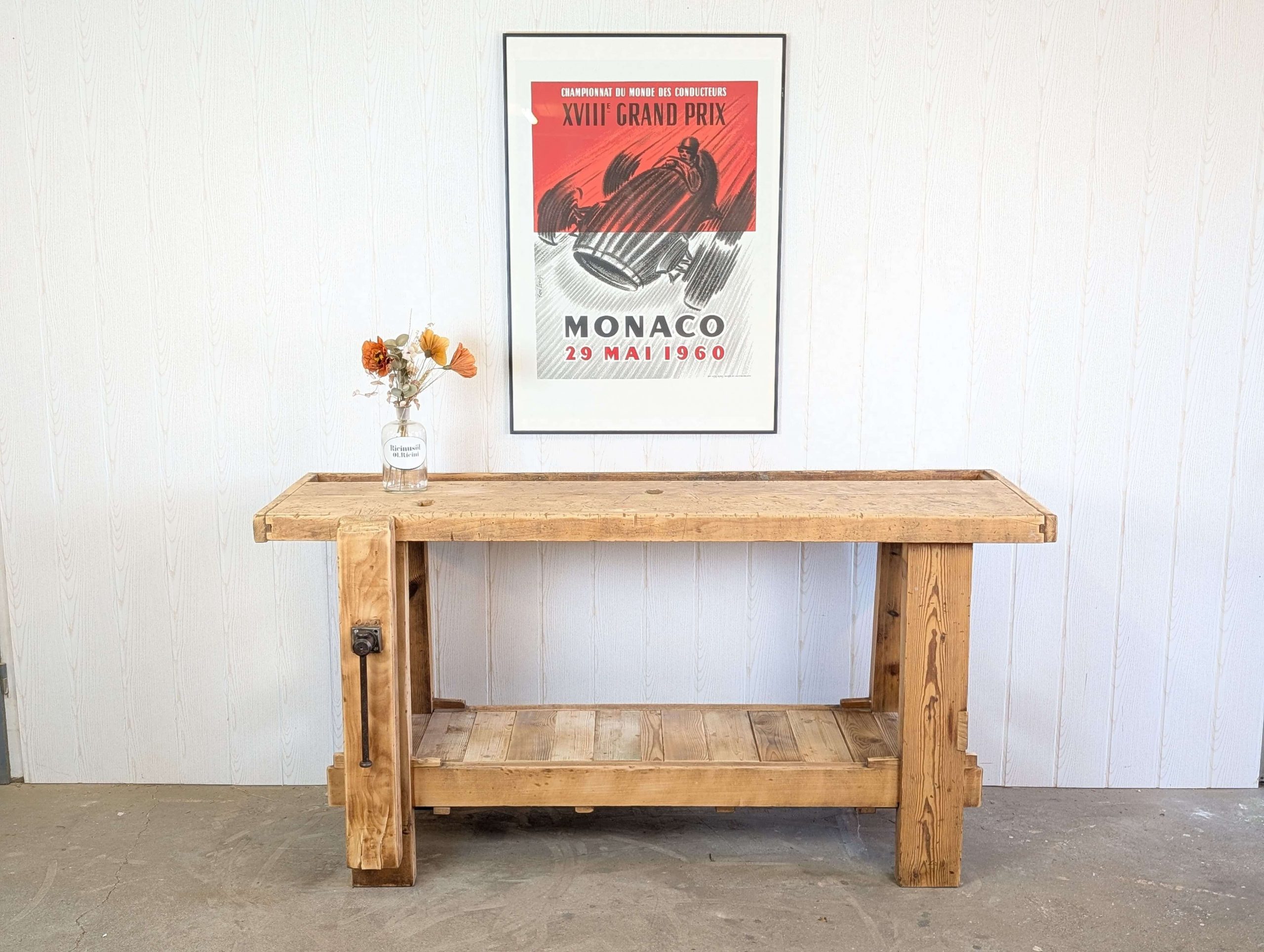Diese besondere Vintage Holzwerkbank -/ Hobelbank ist ca. 100 Jahre alt und besticht durch ihre einmalige Patina: