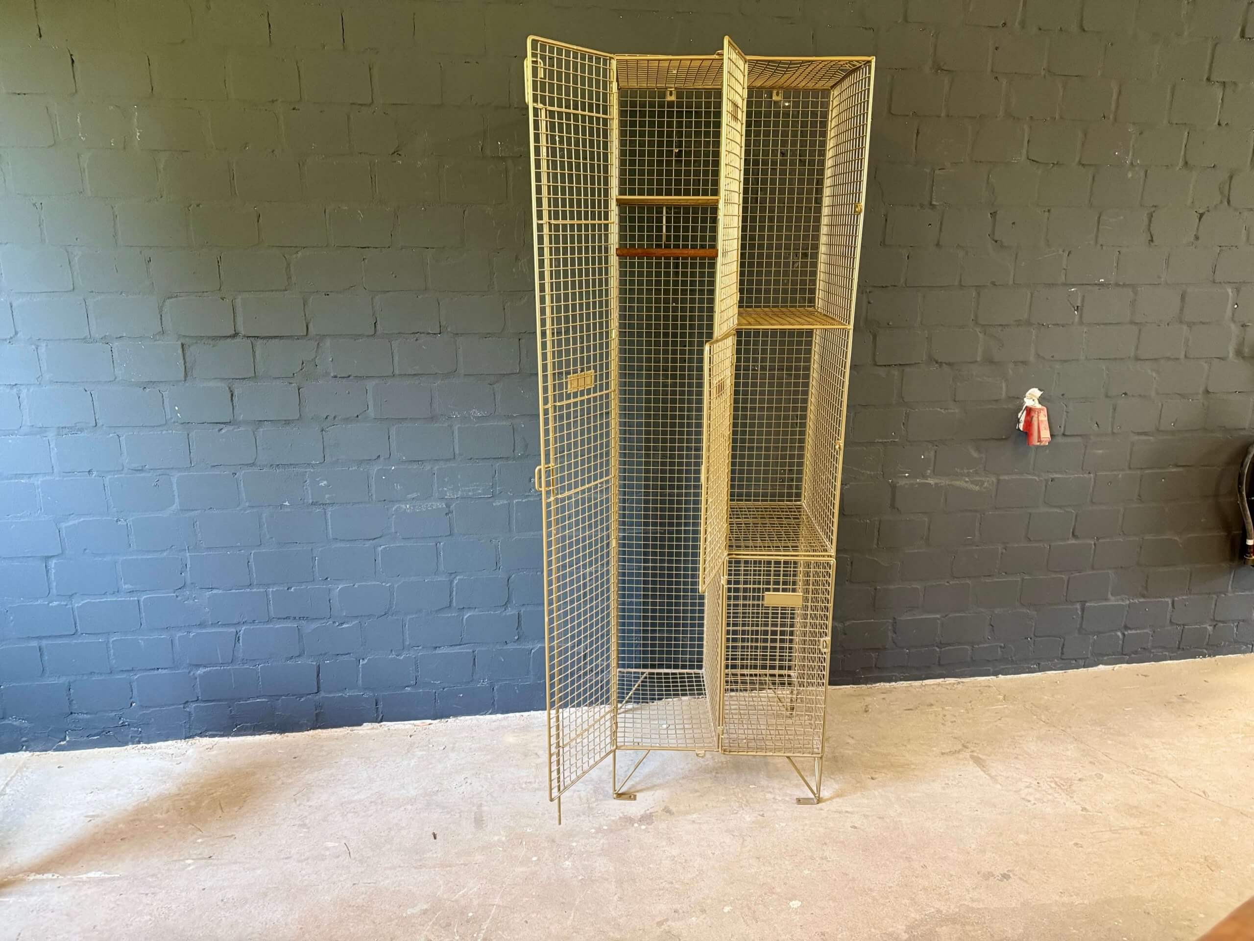 Dieser originale 60er Jahre Vintage Spind aus Holland besticht durch seine originale Lackierung und unverwechselbare Vintage-Patina. Perfekt für Liebhaber des Industrial Designs und ideal als Garderobe, Weinschrank oder Kleiderschrank einsetzbar. Die einzelnen Fächer können durch ein Vorhängeschloss ( nicht enthalten ) verschlossen werden.
